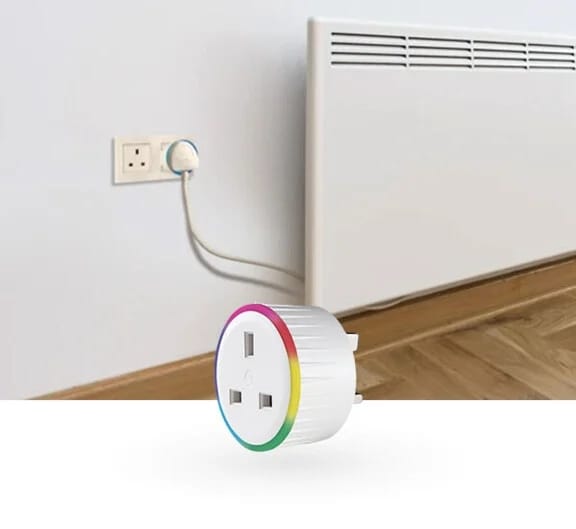 Smart plug with Wi-Fi, Bluetooth connectivity and power metering. Monitor and control lighting, heating, or any other connected electrical appliance at home with a power rating of up to 3000W.