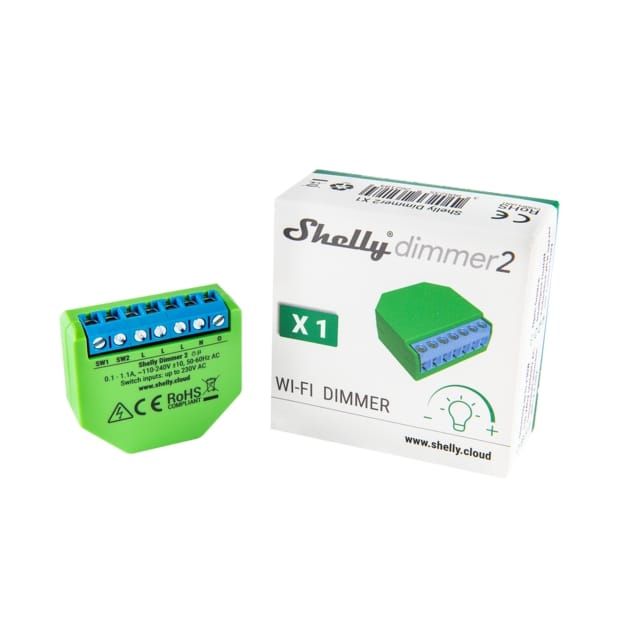 Shelly Dimmer2 is a smart switch unit for luminous intensity adjustment with precise power metering that can fit into all electrical installations. It provides a full set of dimming functionalities and can be used even in houses where the neutral line is missing. Use it to control, dim, and power measure a wide range of halogen lights, dimmable LED, and ferromagnetic transformers between 110-230V ±10%.